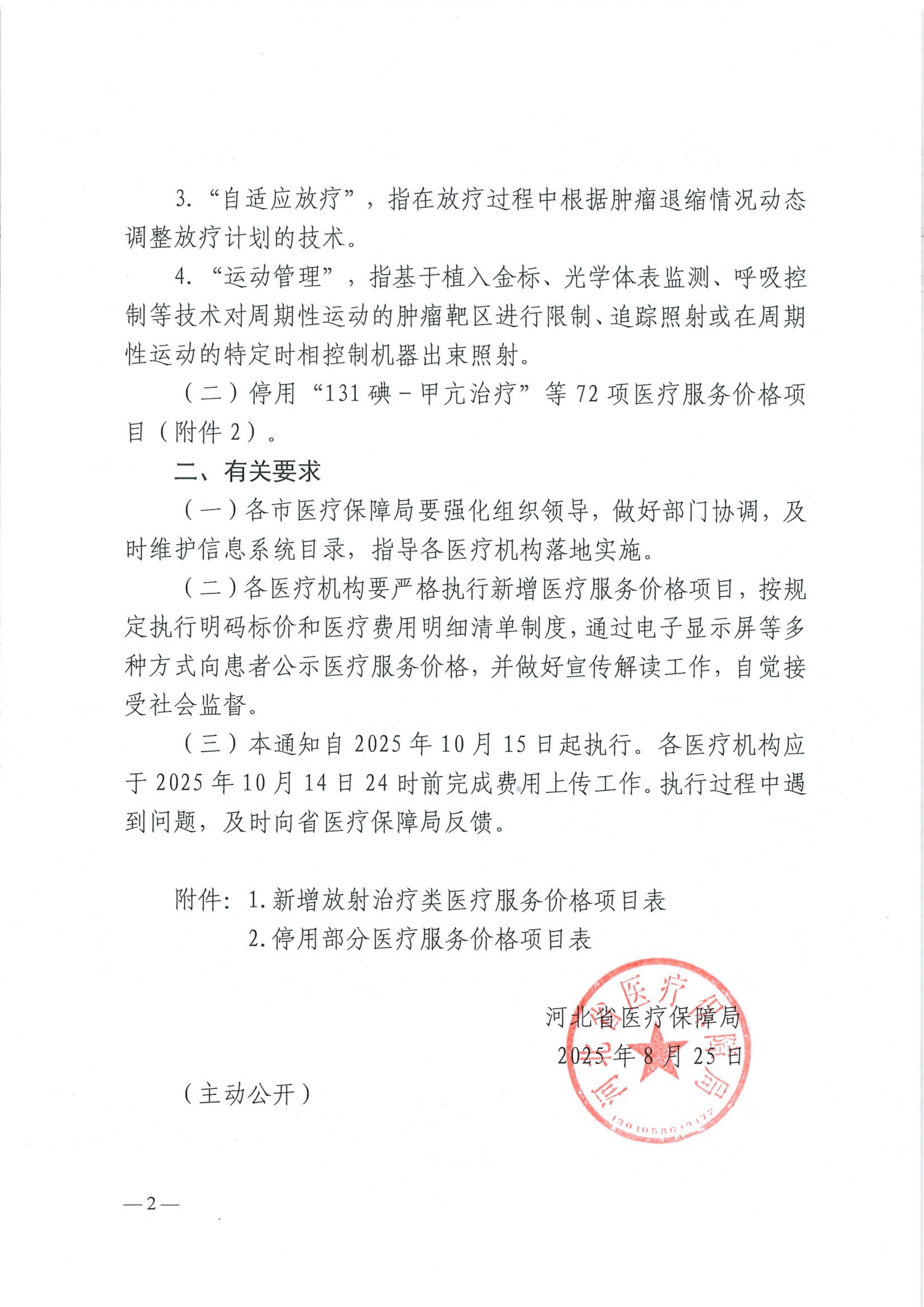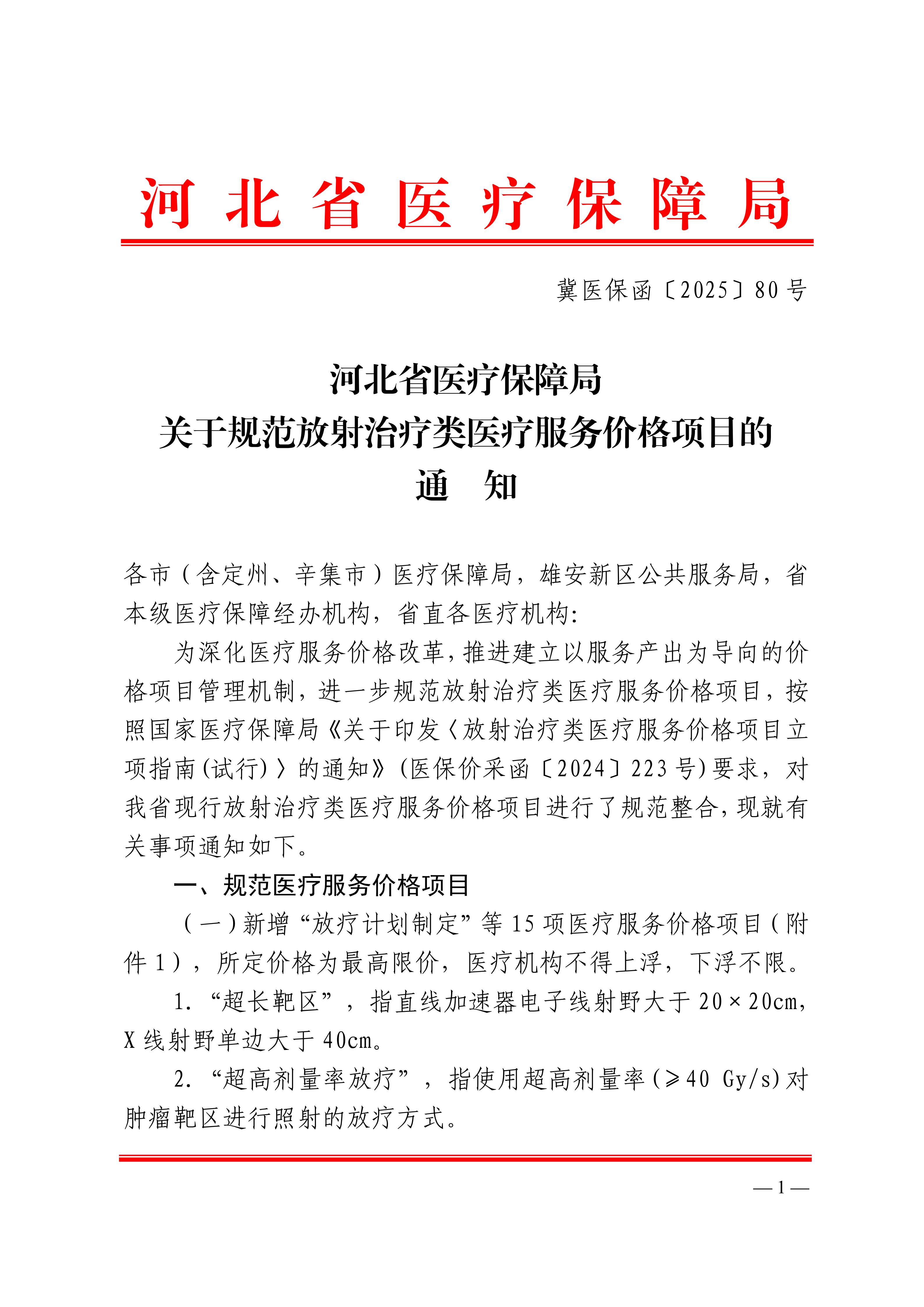 冀医保函[2025]80号-关于规范放射治疗类医疗服务价格项目的通知