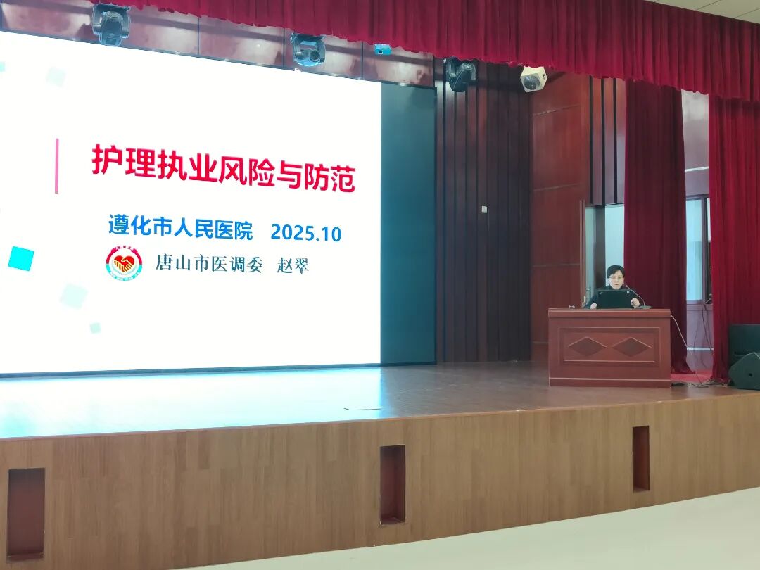 近日,为强化院内护理人员执业风险意识,提升护理质量与安全管理水平,我院特别邀请唐山市医疗纠纷人民调解委员会赵翠主任,面向全体护理人员开展《护理执业风险与防范》专题培训。我院副院长鲁锋出席培训活动。