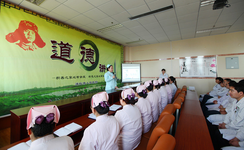 创优动员大会与道德讲堂一并举行,道德讲堂各环节与创优竞赛内容相辅相成,互相促进。诵经典,诵出心灵感悟,启迪人性善良。动员会传达了《遵化市人民医院关于开展“窗口单位优质服务”竞赛活动实施方案》,把坚持以病人为中心,让患者满意放心作为优质服务的精髓,做到“人人有亮点,个个勇争先”。在学模范环节播放了最美乡村医生李前峰的感人事迹,把动员大会推向高潮。各窗口代表踊跃上台表态发言,决心以李前峰为榜样,大胆亮出自己的服务承诺,用责任与爱心服务好每一个病人,用真心、爱心、耐心换取患者的放心、安心、舒心,树立良好形象,打造第一印象。