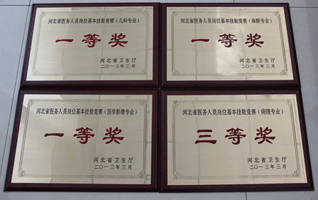 我院在河北省医务人员岗位基本技能竞赛中儿科专业、麻醉专业、医学影像专业获一等奖,病理专业获三等奖,医院被评为