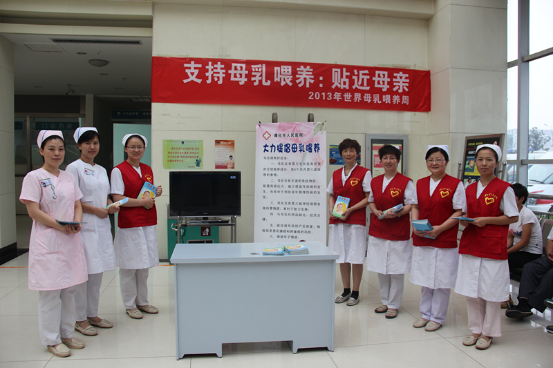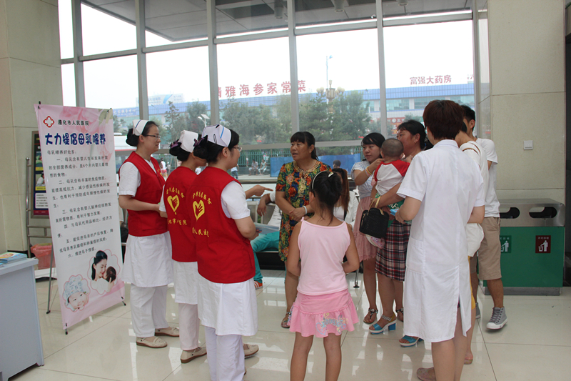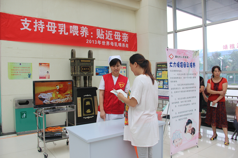8月6日上午,我院在门诊大厅举行了丰富多彩的母乳喂养宣传活动,志愿者们通过各种形式向人们大力宣传母乳喂养的好处。通过液晶显示屏滚动播出促使母乳喂养成功的十项措施﹑婴幼儿喂养的关键信息、国际母乳代用品销售守则、2013年橙丝带行动倡议书等内容,还以动画形式播放的母乳喂养宣传片,吸引了许多患者和家属前来观看咨询,发放母乳喂养宣传册200于份。