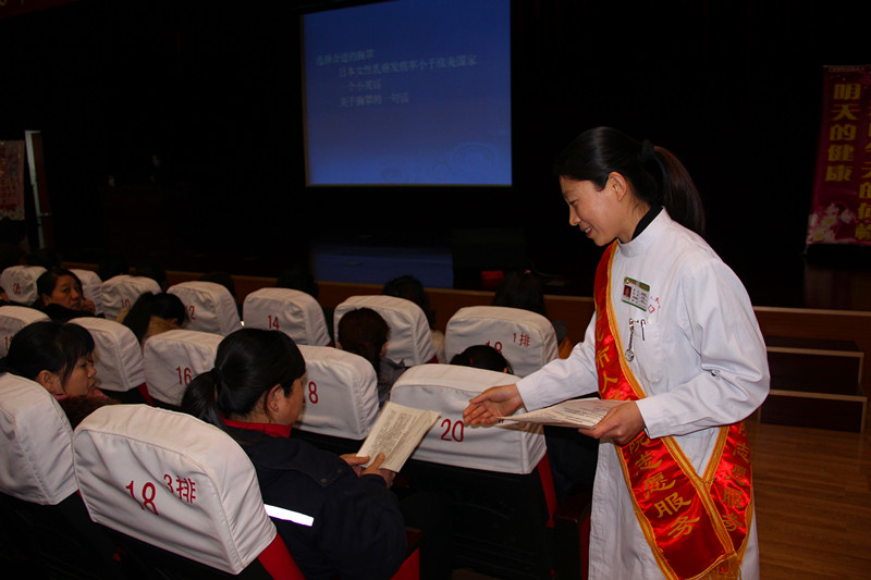 在“三·八国际妇女节”来临之际,3月1日上午,我院志愿服务队走进唐山建龙钢铁有限公司,开展了女职工健康知识讲座和健康查体志愿服务活动。我院妇科主任张宏讲解了乳腺癌、宫颈癌等疾病的防治、经期、孕期女性的保健等知识,向女职工倡导健康的生活方式和生活习惯,不断提高预防和控制疾病的能力。志愿者们还发放了女性保健健康小册子及宣传单300余份。我院将继续开展志愿服务活动,为广大群众提供医疗保健需求,弘扬“奉献、友爱、互助、进步”的志愿者精神,不断传递正能量。
