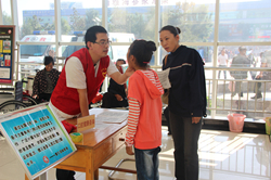 在门诊病人高峰期,口腔科专家来到活动现场,为来院就医的患者现场进行诊治并解答咨询,讲解了口腔健康是反映健康和生命质量的一面镜子,定期进行口腔健康检查,定期洗牙,就会远离口腔疾病。随后,志愿者们还发放了有关口腔健康的宣传资料。